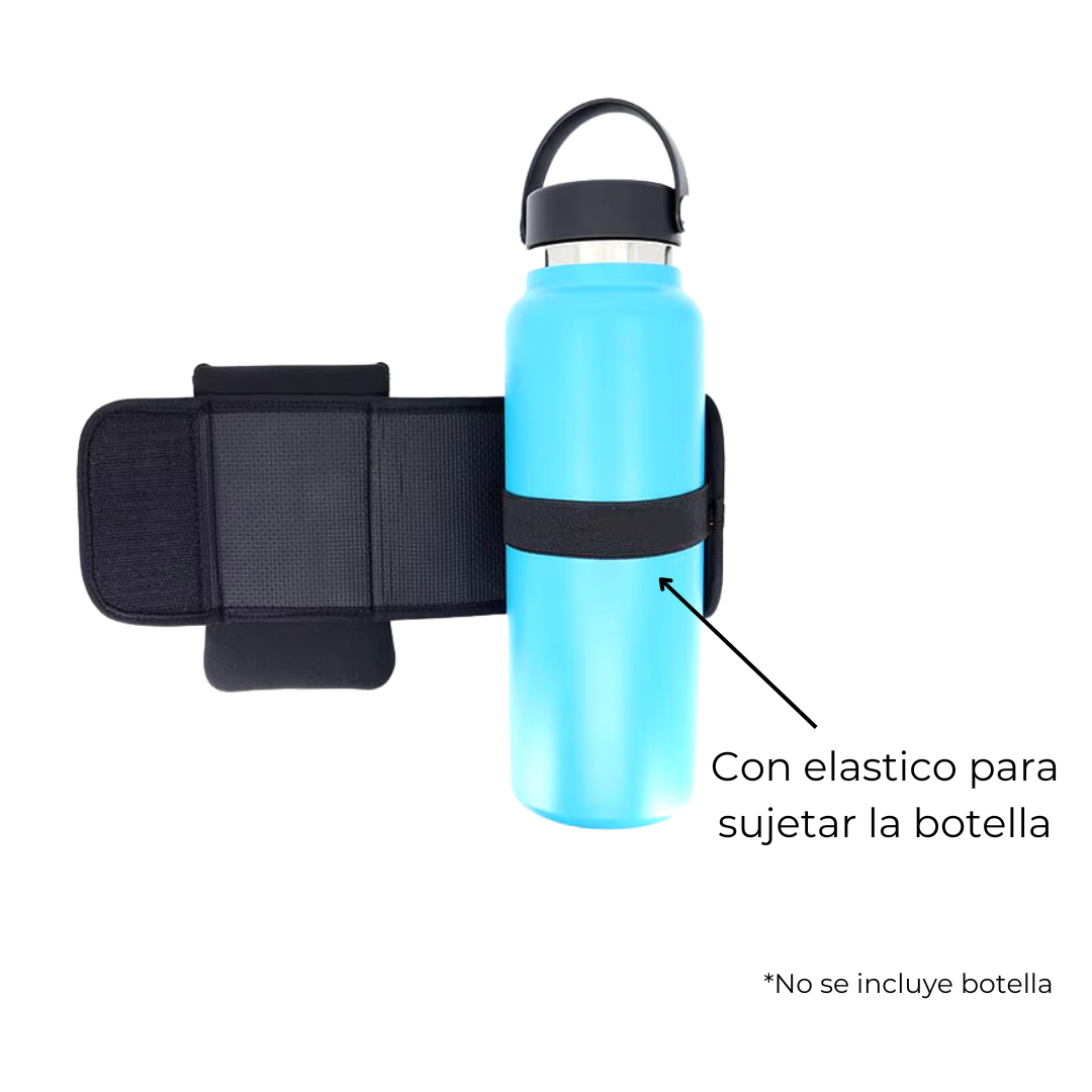 Diseño innovador: Este práctico accesorio cuenta con un diseño inteligente que se adapta a la mayoría de las botellas de agua, brindándote la comodidad de llevar tu hidratación contigo sin ocupar espacio en tu bolso o mochila. Además, su funda acolchada protege tu teléfono de golpes y arañazos, permitiéndote escuchar música, podcasts o consultar tus rutinas de entrenamiento sin preocupaciones.