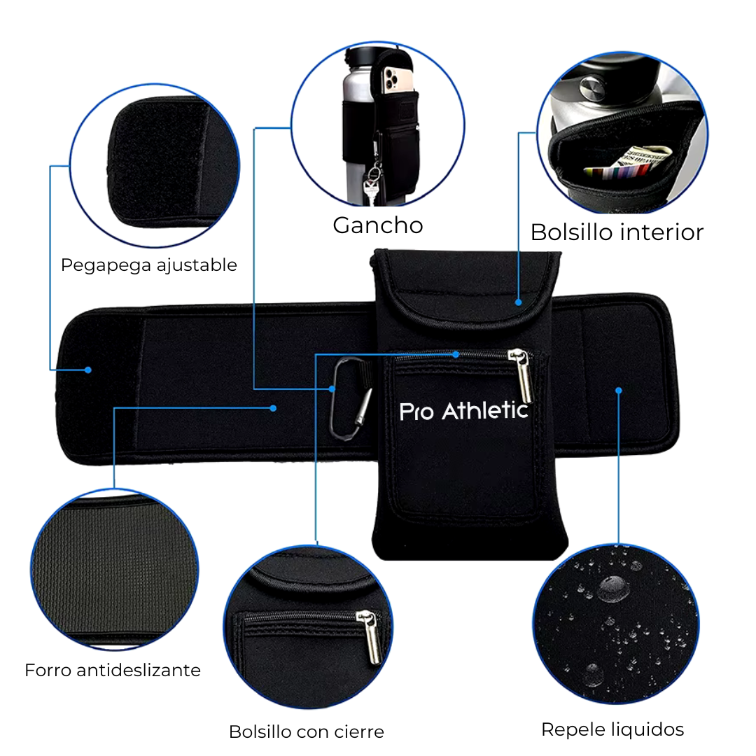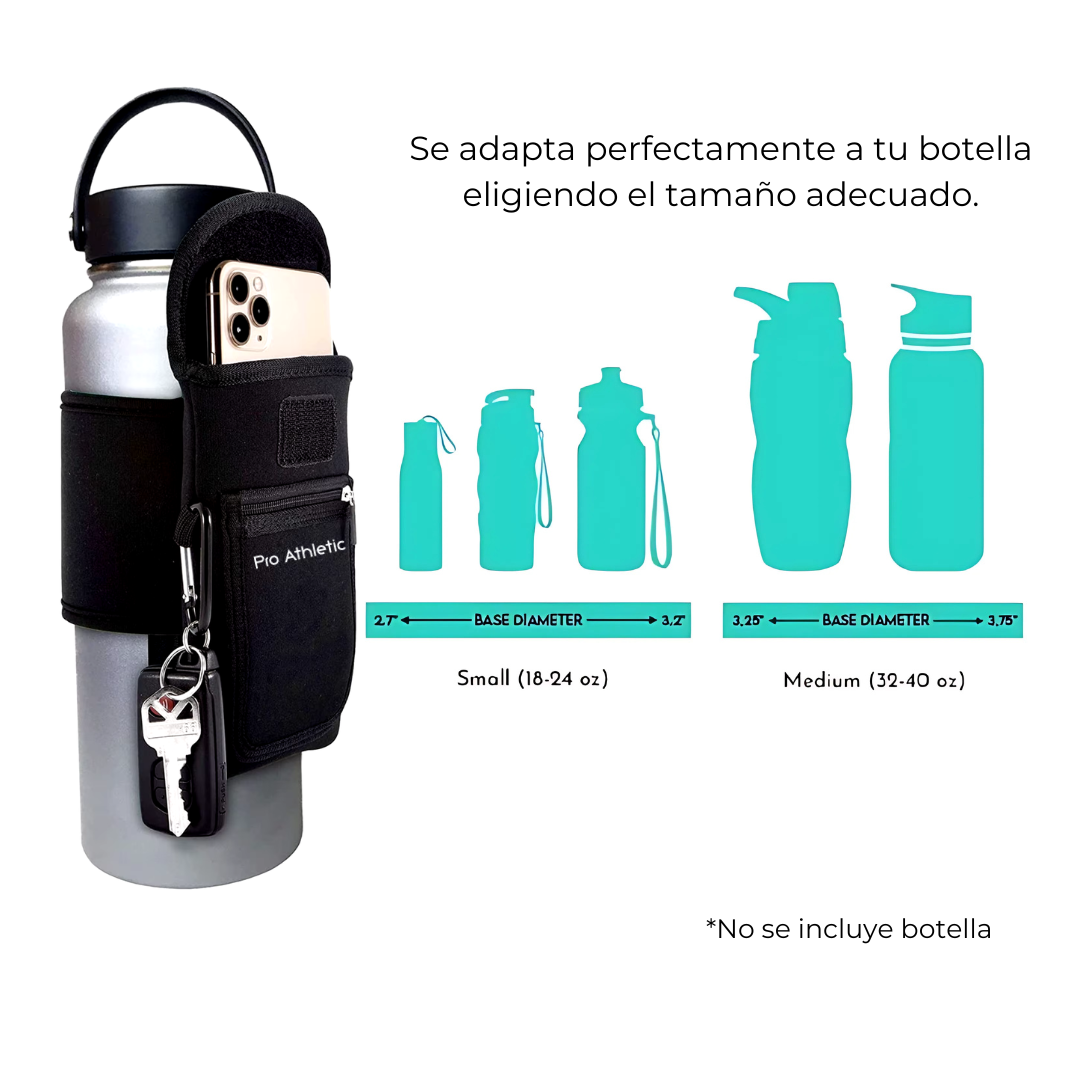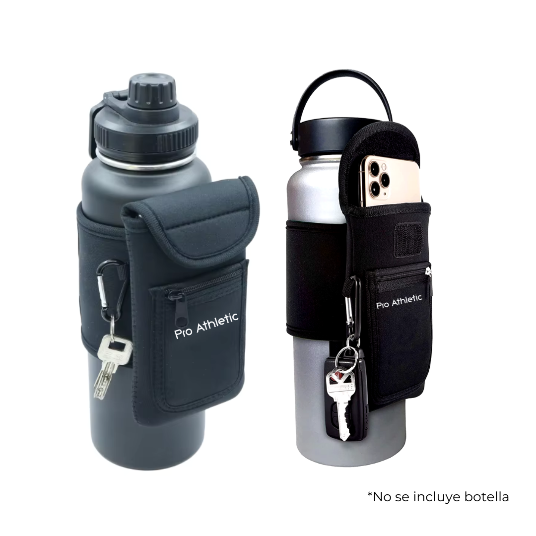 ¿Cansado de llevar tu teléfono, llaves y botella de agua por separado mientras haces ejercicio? El porta-botella Pro Athletic es la solución perfecta para mantener todos tus esenciales organizados y al alcance de tu mano durante tus entrenamientos.