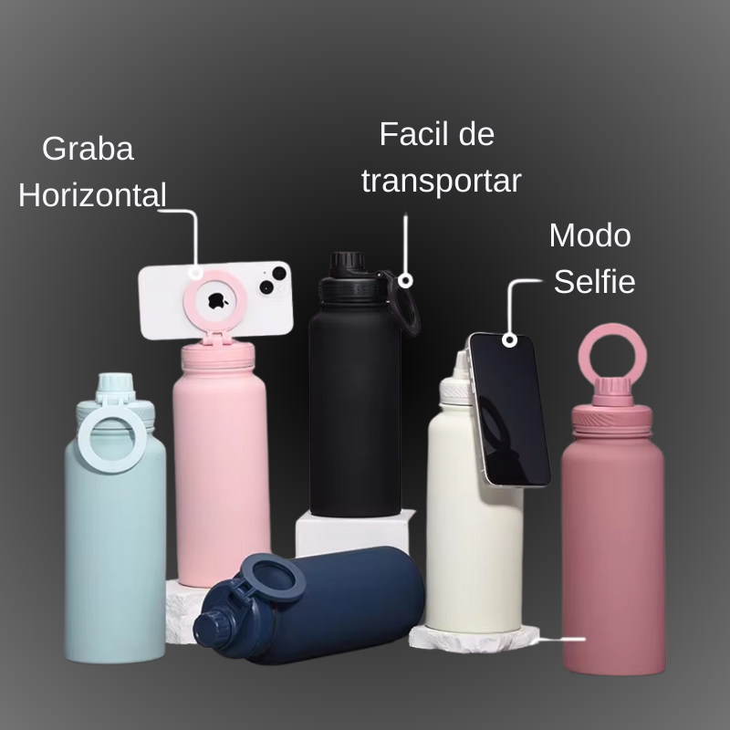 Anillo magnético MagSafe: Sujeta tu teléfono de forma segura y elegante gracias al anillo magnético compatible con MagSafe. Gíralo 360° para encontrar la posición perfecta y disfruta de tus contenidos favoritos mientras te hidratas.